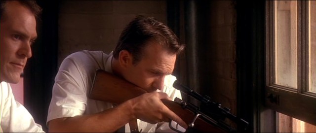 Oswald, the disillusioned, pro-Castro, Marxist/Leninist shooter who supposedly fired three expert rounds at the Kennedy motorcade and killed the President, is played by noted Nineties acting chameleon Gary Oldman, who, acting the part of self-proclaimed patsy and hapless fall guy throughout, is a subdued triumph.